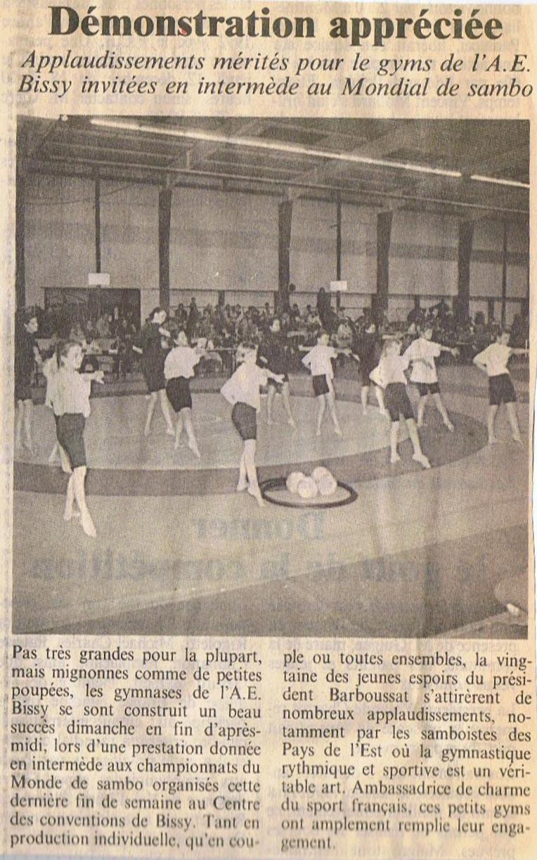 L’un parce qu’il cherchait un titre international au championnat du monde de lutte Sambo organisé au parc des expositions, et l’autre parce que le président local du club de lutte avait pensé qu’inviter des petites gyms de l’AEB apporterait une touche de fantaisie ! Ne disait-on pas à l’époque que GRS voulait dire « Grâce, Rythme, Souplesse » ?