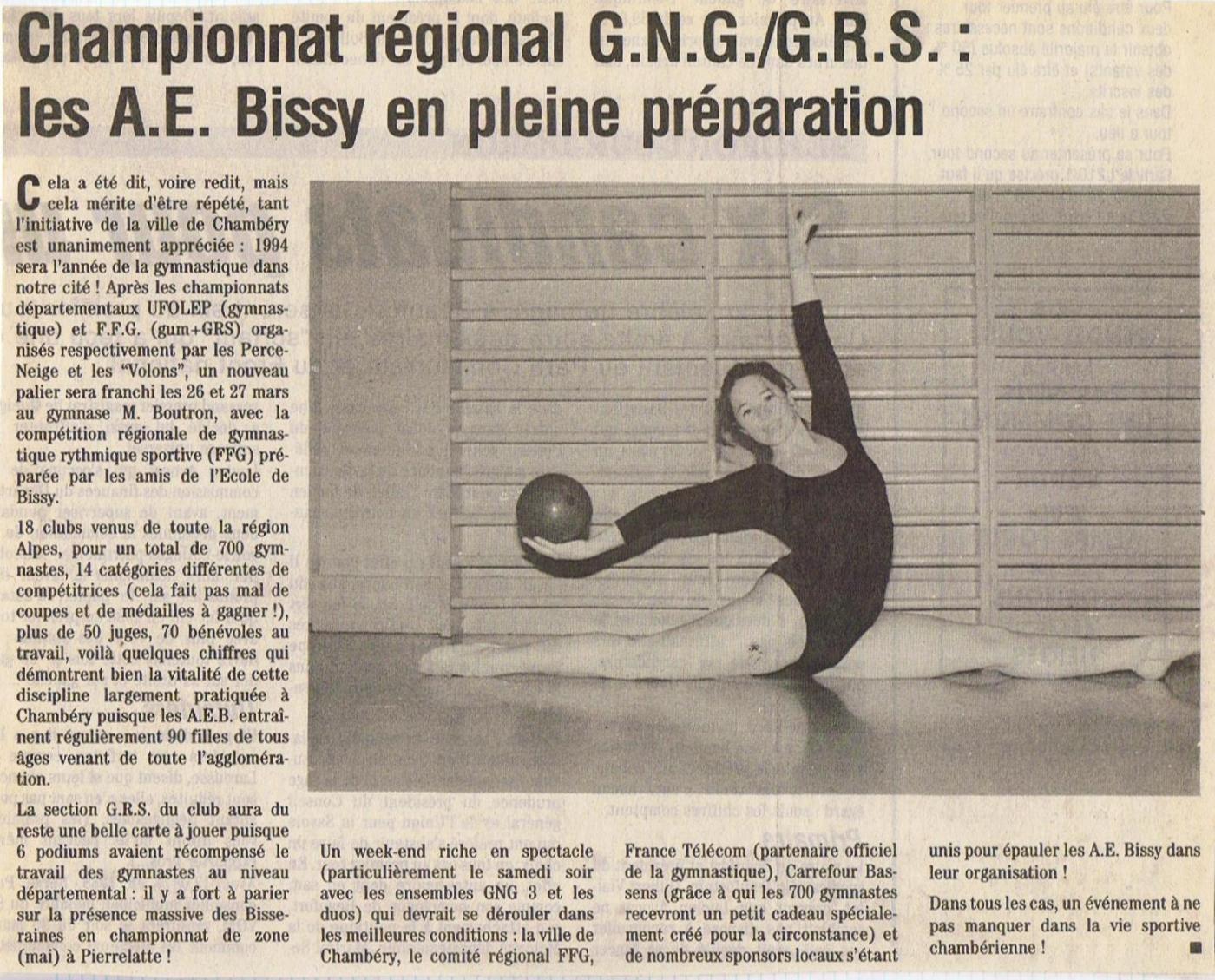 Faire de 1994 une « année de la gymnastique » : une idée forte de Jean Louis Tablet, l’adjoint aux sports de l’époque, et pour le club l’opportunité de franchir un cap dans l’opinion générale : car un « bon » club doit pouvoir évidemment se reconnaître à ses performances et ses conditions d’accueil, mais aussi… à ses capacités d’organisation !