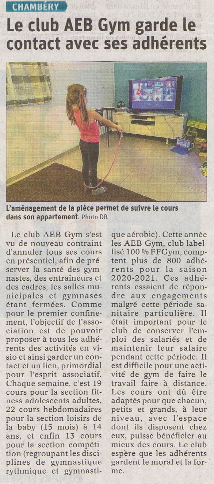 Presse – Article du Dauphiné Libéré du 27/11/2020