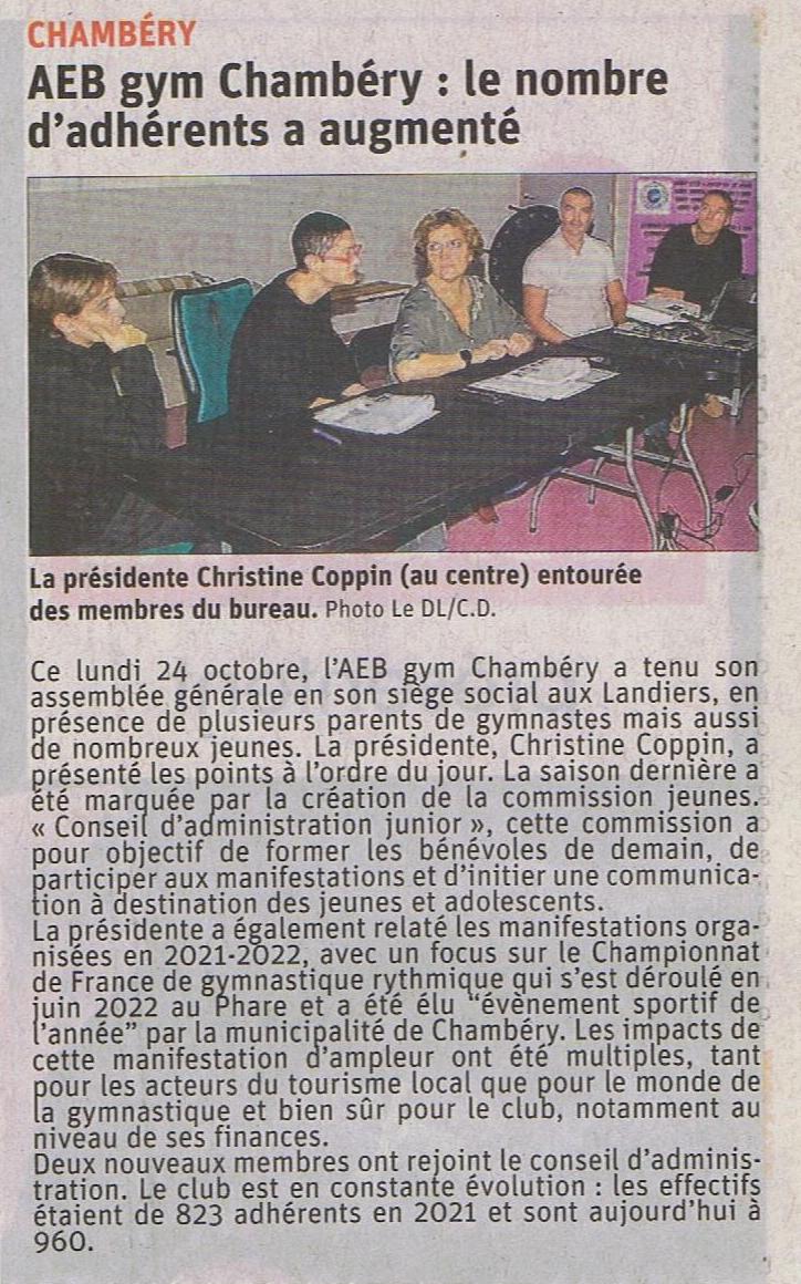 PRESSE – Article du Dauphiné Libéré du 27/10/2022