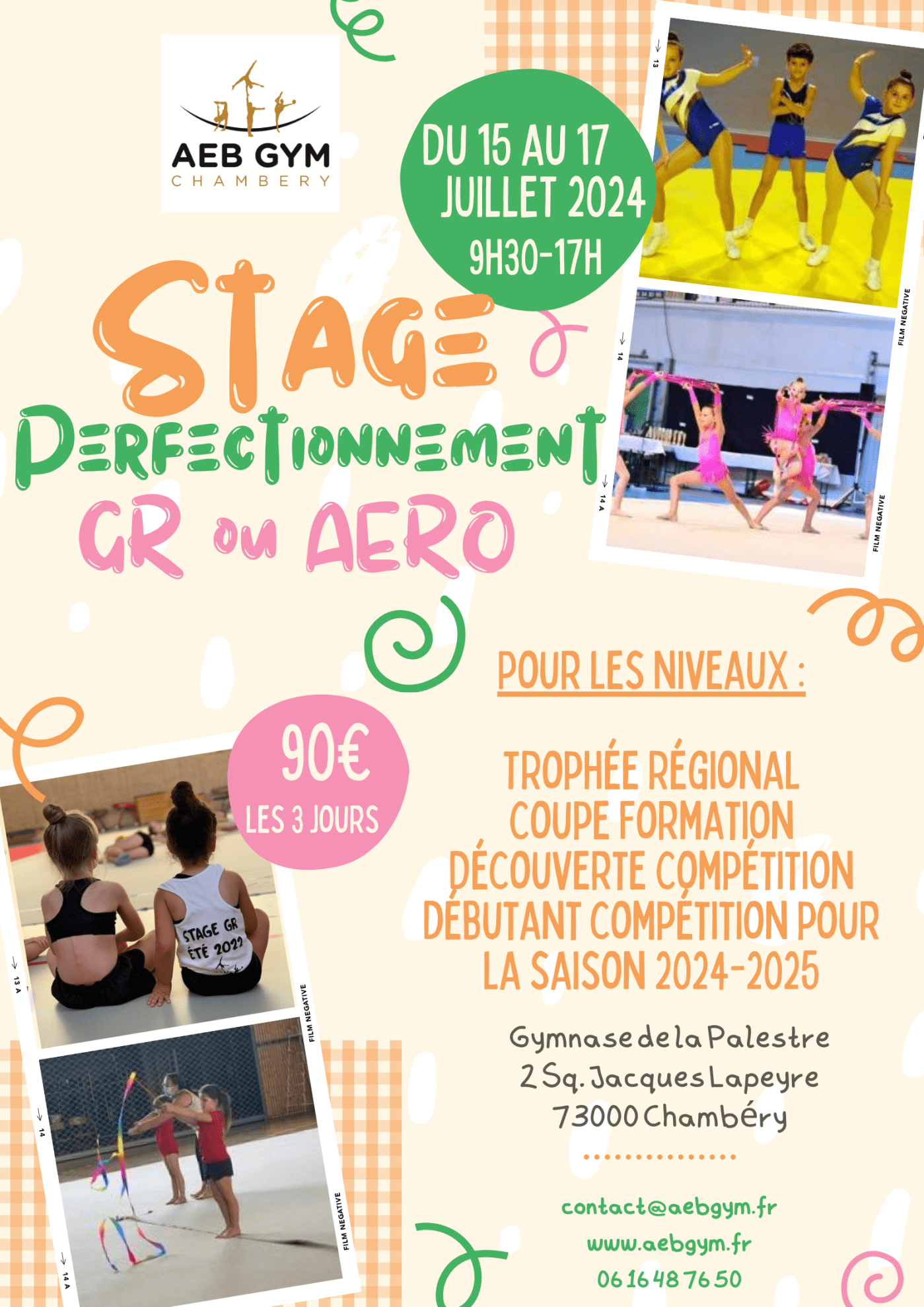 Pour marquer la fin de saison, et pour commencer à préparer la suivante au mieux, l’AEB Gym Chambéry organise un stage de perfectionnement du 15 au 17 juillet 2024 inclus à Chambéry.