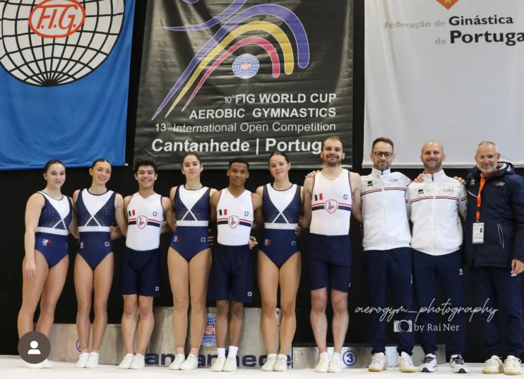 Le week end du 22/23 mars , en parallèle de l’interdépartemental ensemble GR, s’est déroulé l’Open International et Coupe du Monde Aérobic au Portugal (Canthanede).