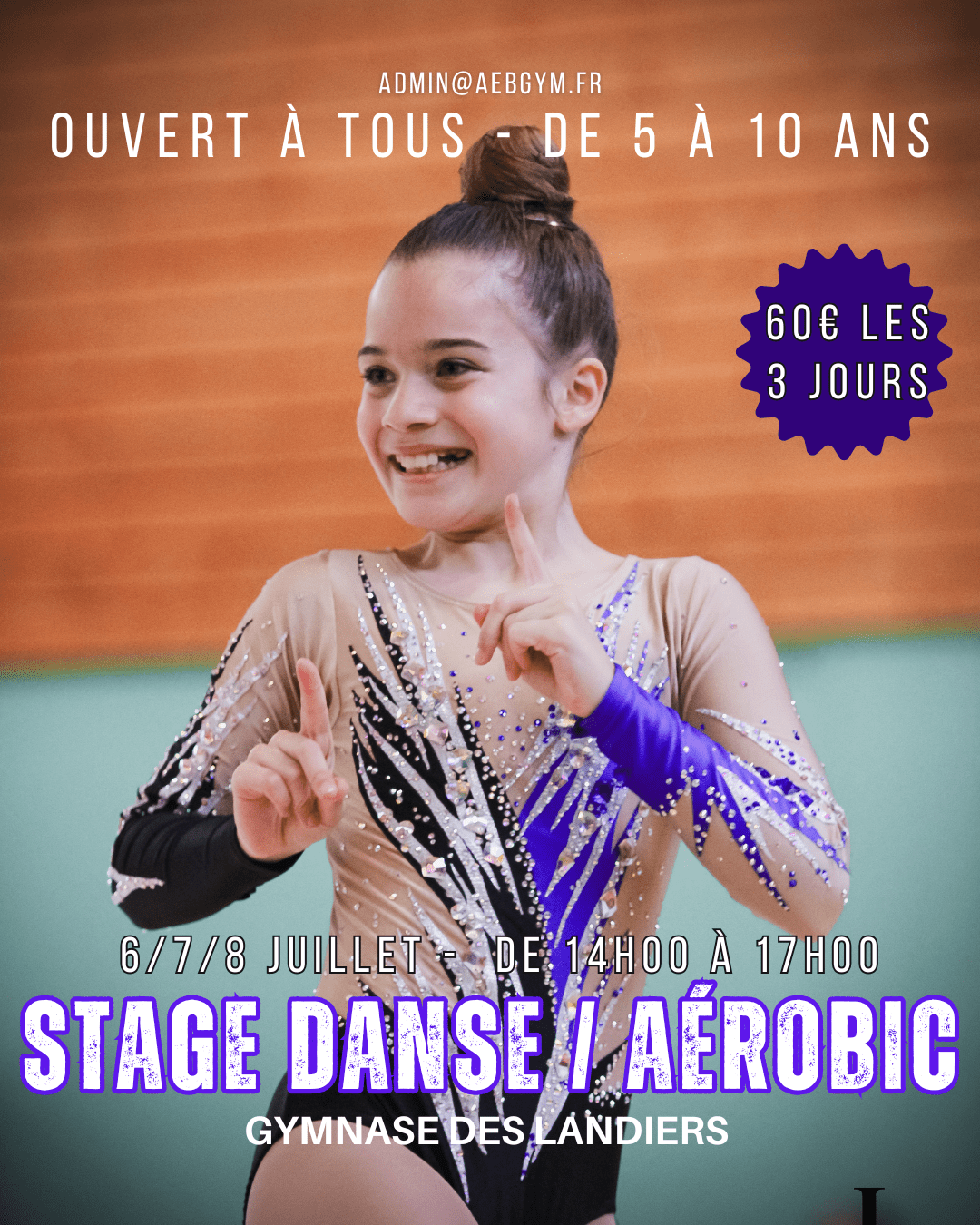 L’AEB Gym Chambéry organise un stage de danse et aérobic spécialement conçu pour les enfants de 5 à 10 ans, du niveau débutant jusqu’aux catégories Fedéral B et Fedéral A. Ouvert aux adhérents comme aux non-adhérents, ce stage est une belle opportunité de découvrir ou approfondir une activité sportive dans une ambiance ludique et conviviale.