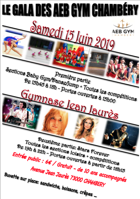 Notre gala de fin d’année aura lieu samedi 15 juin 2019 au gymnase Jean Jaurès. Il se déroulera en deux parties : – De 15h45 à 18h toutes les sections baby (baby gym – baby danse – baby danse GR – baby jump – éveil gym/aero du lundi) + toutes les sections compétitions Aéro et GR – De 19h... Lire la Suite →