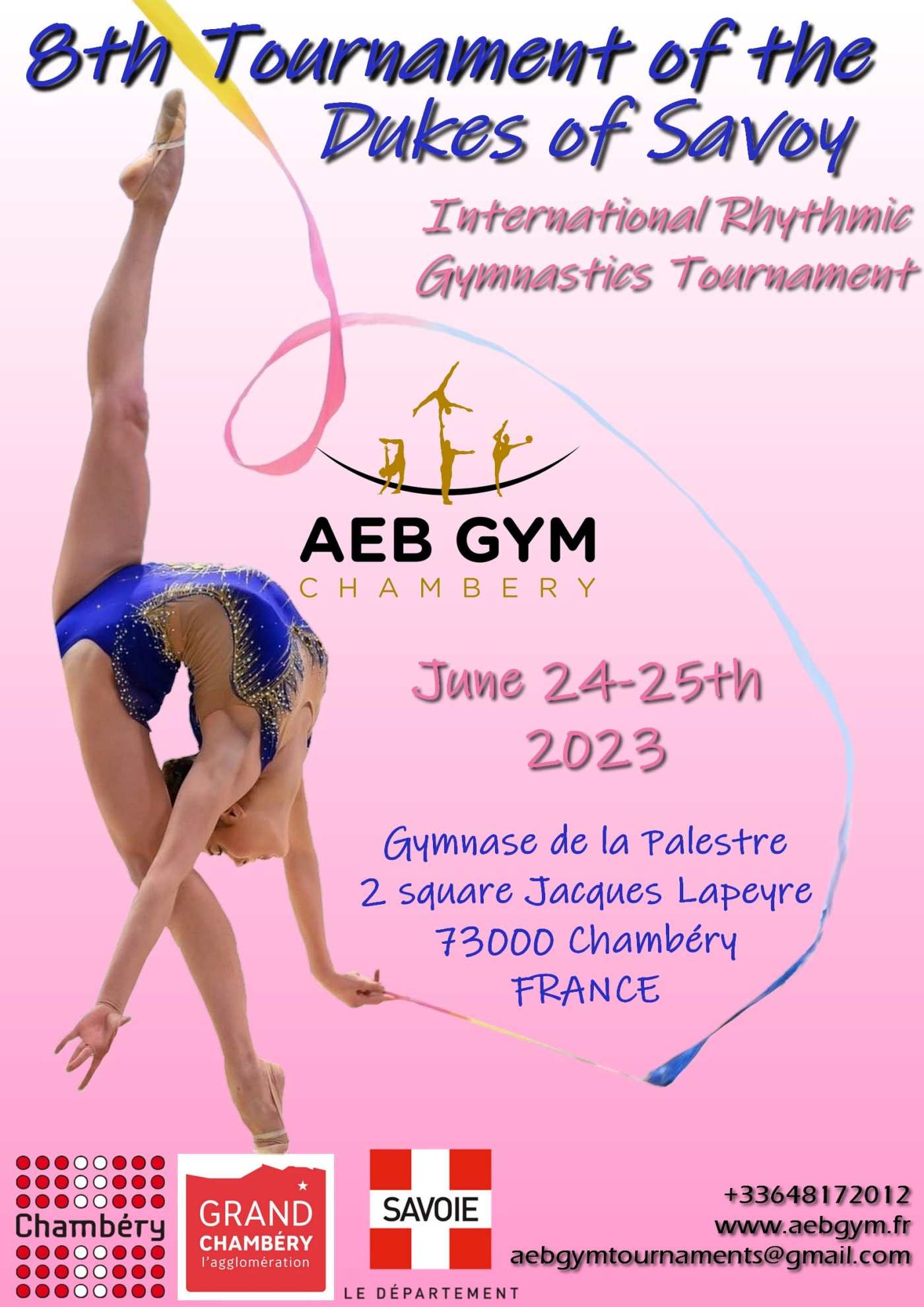 The AEB Gym will organize the 8th Tournament of Dukes of Savoy on June 24th and 25th 2022 : a Rhythmic Gymnastics tournament open for french and international gymnasts.